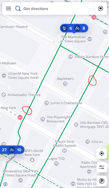 Problem: In the Citi Bike map (in the app) it is almost impossible to tell traffic flow direction for streets when browsing the map, an arguably important piece of information when biking in NYC. Similarly, reading street names is just as hard with them only appearing if you zoom in almost all the way! The green bike lane lines cover the street arrows which indicate the direction of traffic (I've circled two arrows that are being covered). Also, only two street name labels are showing here: Suggestions: Make it easier to see the traffic flow arrows by either making the direction arrows easier to see (change color, size, etc) or allow users to toggle the green bike lane overlay on the map on and off Make it easier to see/read street names and prioritize them over places of interest Add a toggle to show/hide places of interest on the map (restaurants, hotels, stores, etc) Lastly, an argument against improving the current experience might be to user the "directions" feature which will give you a correct route but to that I say that sometimes we just want to do an ad-hoc bike ride. Secondly, bike angels (like me) would love to better see street names and traffic flow directions I don't really use the directions feature because there's no way to simply put a pin on the map or tap on a station as your start and end address; we must type in the address which is time-consuming.RedDragon2 hours agoSteady Solver381Views13likes8CommentsExporting Ride History