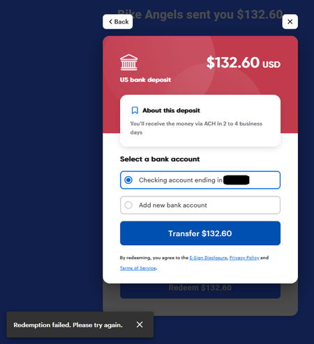 Hey there, T1m3Wizard, I'm sorry to see you hit the roadblock when redeeming your cash rewards.