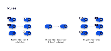 What is a streak? A streak is a perk activated when a Bike Angel takes three consecutive point-earning rides in a 24-hour period. Once a streak is active, points on the map are multiplied for a given amount of time or until the streak is broken. How do streaks work? Take 1 ride to unlock a 2x multiplier for 24 hours Take 3 more rides while you have a streak to unlock a 3x for 24 hours Take 4 more rides while you have a streak to restart the 24-hour clock and extend your streak How do I keep my streak? Don’t take any ‘negative’ rides. A negative ride is a ride that brings bikes to a station that doesn’t need bikes or takes away a bike from a station in need of bikes. * A Neutral ride will not break an active streak.370Views3likes0Comments3X Streak Ended on a Positive Ride